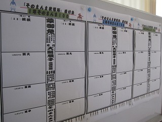 穴水中学校も負けてはいられません。 「そのまんま秋場所」番付表が1階図書室前に提示されました。