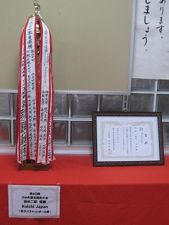 相撲部が県体で獲得しました。 玄関前に飾ってあります。 がんばりました!