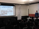 この日、満15歳になるわが校の2年生が、穴水町さわやか交流館プルートに集まりました。立志のつどいでは、はじめに教育長から「主観的、客観的なものの見方を養い、節目の日に過去を省みて、残りの中学校生活をどう過ごすかを考えてほしい。」とのお話がありました。その後、校長先生の教え子である山瀬さんを講師にお招きし「今のわたしがあるのは~架け橋となれる警察官に~」と題して、ご講演をいただきました。山瀬さんは、8年前に起きた高速ツアーバス事故でお母様を亡くされています。ご自身が警察官を志すに至った経緯や、あえてお母様が亡くなられた土地での勤務を選んだ選んだ理由、警察官になるという夢をかなえるために作ったオリジナルノート、自分がなぜ警察官になりたいかを声に出して他の人に自信をもって言えたことなどを、一つ一つ丁寧にお話してくださいました。