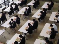 今日(4月19日)の給食は、「たけのこご飯、バンバンジーサラダ、豚汁、牛乳」でした。給食は、季節の旬のものを味わえるとても嬉しい時間です。生徒の中には、今年初めて、たけのこを食べた人もいたのではないでしょうか。