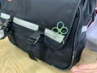 なお、いただいた傘は、前方の視界が見やすいようにと一部透明になっており、多少の雨風でも視界を妨げることがありません。また、夜間のドライバーからも見やすいように黄色の生地を使った傘となっています。雨天時の登下校を中心に、事故にあわないように有効に活用してほしいと思います。