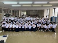 町の商工会女性部が5月から取り組んでいた「シトラスリボンプロジェクト」。コロナ感染症に対する差別・誹謗中傷を無くそうと、どんな場所でもだれもが、「おかえり、ただいま」と言える居心地がいい地域、家庭、職場・学校にしようと始まった運動です。その趣旨に賛同して、まず2年生が前回このリボンづくりに取り組みましたが、今回、「いじめ撲滅宣言」の準備を進めていた生徒会が、この運動を全校挙げての取り組みにして、本校での「いじめのない学校」を目指します。