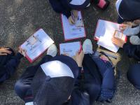 2年生は、クロームブックで結び方の動画を見ながら、一生懸命に作っていました。色々な色を組み合わせたり、形を整えたりして、一人ひとりとても素敵なシトラスリボンを完成させていました。リボンに込められた思いも、これからも大切にしていきたいと思います。