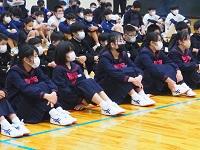 部活動は中学校から始まる活動でもあり,1年生にとっては一番関心の高いものです。各部の紹介を、みんな真剣に見ていました。