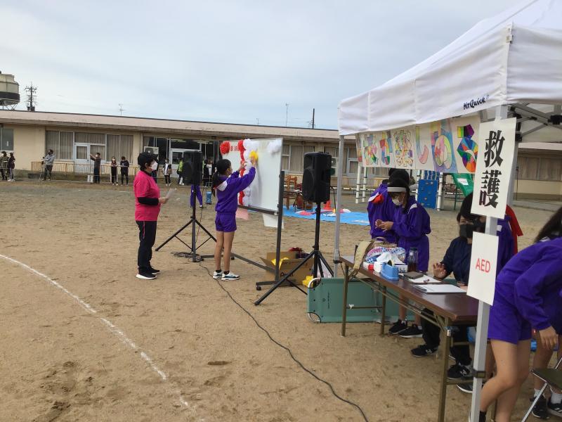 天候が悪かったため、9日に順延となった運動会。心配されたお天気も何とかもち、3年ぶりの保護者の方にご参観してもらえる形で行うことができました。朝早くから児童席にテントを張ってくださったPTAの方々、保護者の皆様、受付や見守りをしてくださった地域の方々、本当にありがとうございました。子どもたちの一生懸命な姿を皆様に見ていただくことができて嬉しく思います。児童のみなさん、とってもがんばりました。