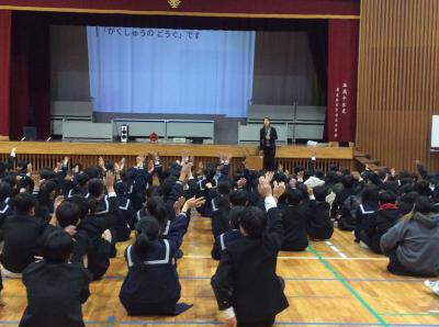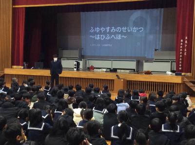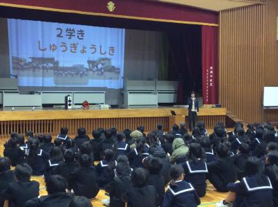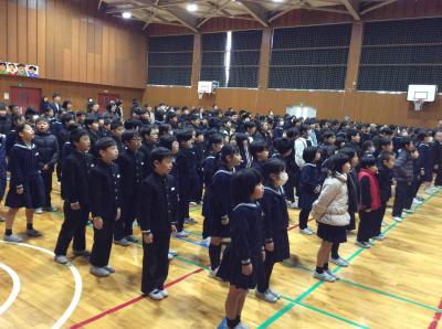 令和7年度2学期終業式が体育館で行われました。初めに校長から、2学期の大きな行事である運動会で、仲間とともに、強い心と体であきらめず挑戦しようという目標を達成できたこと、そして運動会後のたくさんの粟生っ子の頑張り(「うれしい・たすかった・ありがとう」への取組)、さらに「自分力をつけよう・伸ばそう・高めよう」と話がありました。そのあと、GIGA担当から、クロムブックの活用について、生徒指導主事から、冬休みの生活のきまりについて話がありましたが、しっかりと聞いて反応を返すことができました。最後に元気に校歌を歌って2学期を締めくくりました。交通安全に気を付け、健康で楽しい冬休みを過ごし、3学期を迎えましょう。