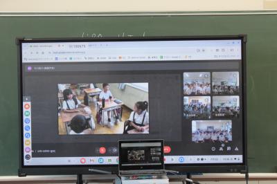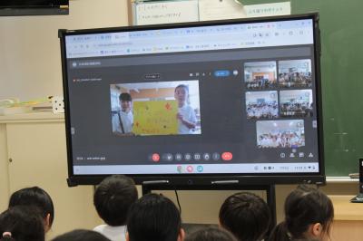 寺井地区3校の3年生が、初めてMeetで学級紹介をしました。寺井小・粟生小・湯野小の順に、クラスの代表者の挨拶やクラスの紹介ビデオ等が配信され、わくわくしながら見合いました。ペアやグループで学び合い集中して取り組む授業の様子、そしてボールや一輪車で元気に遊ぶ休み時間の様子などが流れ、みんな楽しそうに見入っていました。粟生小学校は、音楽の時間に練習を積んできた合唱曲「ハッピーソング」を披露しました。2学期もますま交流が深まりますように。