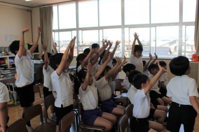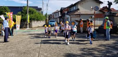 毎月15日は「能美市ふれあいあいさつデー」です。6月は5年1組が、7月は5年2組が児童玄関に立ち、地域の皆さんや粟生っ子のみんなと元気にあいさつを交わしました。7月16日(火)は、交通安全協会の皆さんも来校され、気持ちのよいあいさつの声がいつも以上にとびかいました。暑さに負けず、自分から笑顔であいさつを!地域の皆さん、ありがとうございました。
