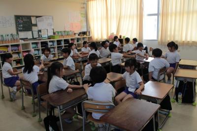 1学期もあとわずか。粟生っ子たちは、暑さに負けず学習のまとめに励んでいます。2年生は、生活科の授業で「虫の観察」やICTサポーターさんとの「プログラミング学習」に取り組み、意欲を見せています。また、チャレンジ学習の時間には、人間関係づくりの活動である「アドジャン」に取り組み、友達との交流を楽しみました。元気に「自分から・みんなで・学びを楽しもう!」