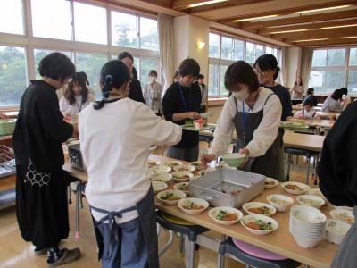 9月19日(金)に5年生の家庭科の学習で、ご飯と味噌汁を作る学習がありました。お米は9月4日(木)に自分たちで稲刈りをした新米です。うまく炊けるか、みんなで透明なお鍋をじっと眺めていましたね。どのグループも、少しやわらかめのご飯になりましたが、新米のご飯と味噌汁を美味しくいただくことができ、嬉しかったですね。