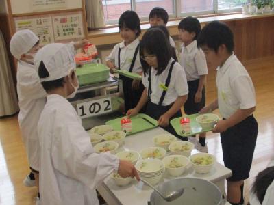 9月5日(金)の給食は白山めぐみん給食でした。めぐみん給食は、その旬の食材を使った献立が登場します。献立は、「キーマカレー・白山なしのフルーツポンチ・牛乳」でした。どの学年も命に感謝し、とても美味しそうに食べていました。これからも、いただいている命、そして作ってくださってい調理員の皆さんに感謝して、食べていきましょう!