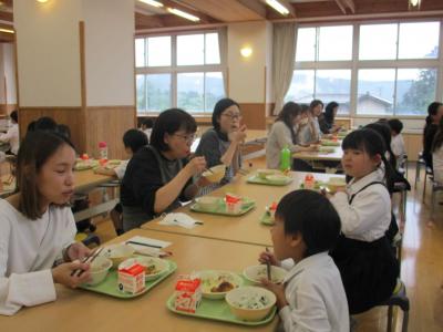 1年生のPTA親子行事「給食試食会」が行われました。栄養教諭の中典子先生から、食育のお話をしていただいた後、親子で給食を楽しみました。1年生は満面の笑みで美味しそうに食べていました。保護者の皆様、参加していただき、ありがとうございました。