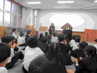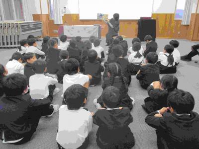 12月3日(水)1~3年生 おはなし会 投稿日時 : 12/03 asahie 12月3日(水)に、おはなし会「ぽぽんた」の3名の皆様が1~3年生に、それぞれの学年に合わせて絵本や紙芝居をしてくださいました。子供たちはお話の世界に引き込ま、時には笑ったり時には驚いたりしていました。本に親しむ良い機会となりましたね。ぜひ、自分から読みたい本を見つけて、どんどん読書もしていってください。 0 コメント