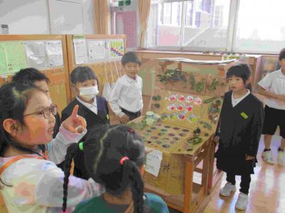 11月20日(木)1年生 生活科 秋と仲良し 投稿日時 : 11/20 asahie 本校では今年度、幼保小連携を意識し、お互いの活動を見合っています。その一環として、11月20日(木)に、1年生が各園の年長さんを招待し、国語の学習で作成した「秋の知らせたい紹介文」を発表したり、みんなが育てた朝顔の種をプレゼントしたりしました。その後の遊びタイムでは、拾ってきたどんぐりや松ぼっくりなどを使ったおもちゃで、年長さんに遊びを楽しんでもらいました。年長さんと一緒の活動は、とても頼もしく凛々しく見えましたよ。 0 コメント