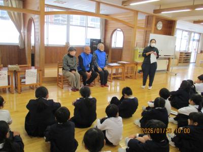 1月26日(月)1年生 生活科 昔から伝わる遊びを楽しんだよ 投稿日時 : 01/26 asahie 1月26日(月)に1年生は、地域の昔遊びの名人、秋田さん、加藤さん、作田さんに来ていただき、昔遊びのコツを学びました。質問したり、一緒に活動したり、友達に教えたりする中で、遊び方やルールについて学び、みんなで楽しく遊ぶことができましたね。いっぱい、コツを見付けたり、比べたり、試したりする中で、充実したひとときになりましたね。 0 コメント