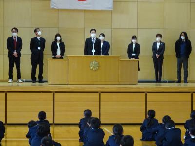 4月6日(水)9名の教職員の新任式が行われました。子どもたちはワクワクした様子で登校していました。新しい担任の先生の発表もありました。新6年生代表(多嶋咲哉さん)の挨拶も立派でした。新6年生のは,入学式のための準備でも,自分から進んでよく動いてくれました。新しい先生方が来てくれてよかった!ありがとう‼