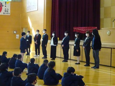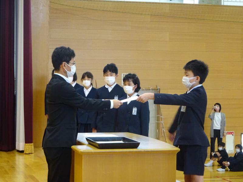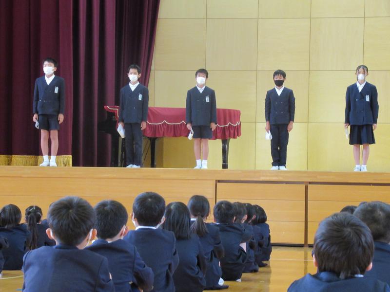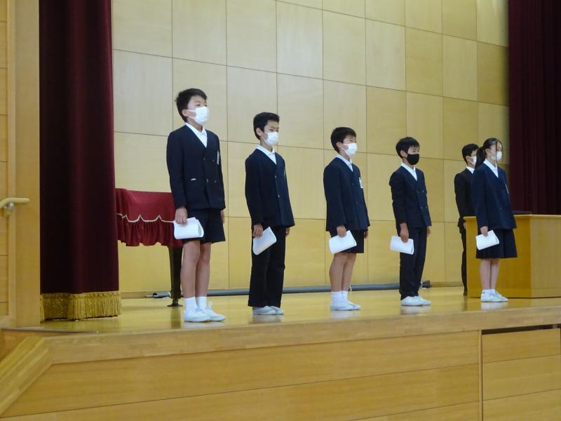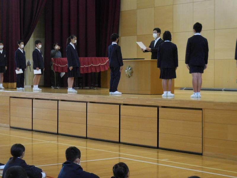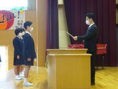 10月27日(木)に後期児童会の任命式がありました。児童会役員そして各委員長はどんな学校にしたいかやどのような活動をするのか,全校児童へのお願いなど自分の思いをしっかりと伝えていました。後期も楽しみです。
