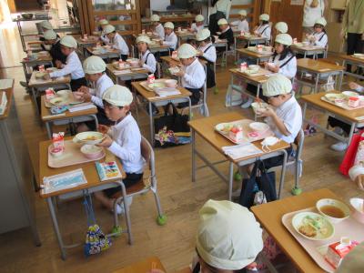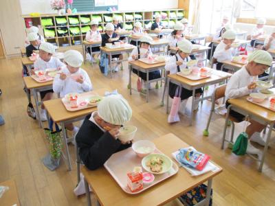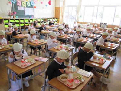 4月12日(火)入学後,はじめての給食。小学校でのはじめてがいっぱいの日々です。