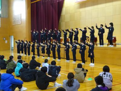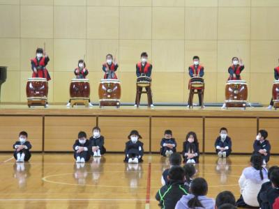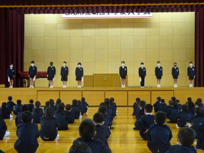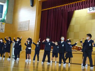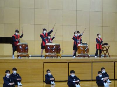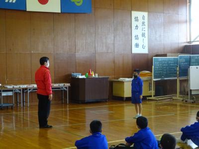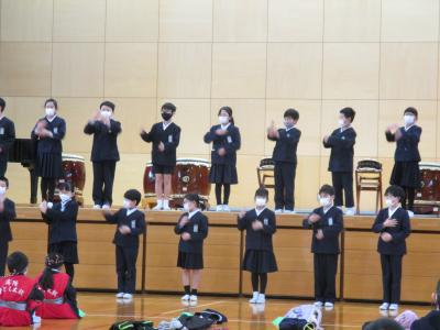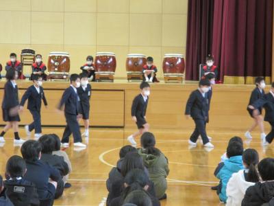 2月1日(水) 2月の全校集会がありました。校長先生からは,それぞれの学年のまとめとなる2月,3月を「努力・協力・挑戦」を意識して過ごすようにしようというお話がありました。その後,4年生がいきものがかりの「ありがとう」の手話を,3年生が「紅太鼓 高階のひびき」と「徳田のうた 心に花を」の踊りを全校の前で披露しました。始まる前はとても緊張しているようでしたが,いざ始まるととても凛々しい姿でやり遂げてくれました。