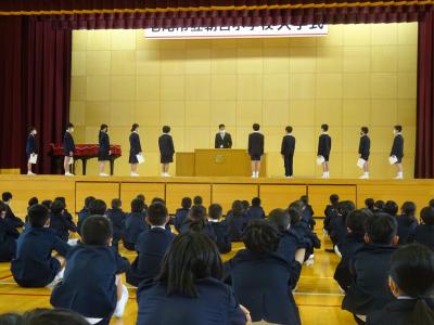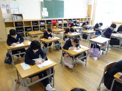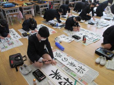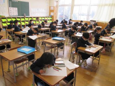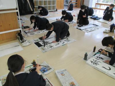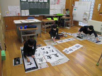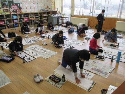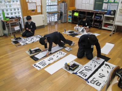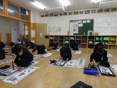 また、始業式後には各教室で校内書き初め大会も行いました。どの学年も集中して取り組み,冬休み中の練習の成果が見られる作品が多くありました。今年は1月11日(水)~1月13日(金)の3日間学校内で展示を行います。