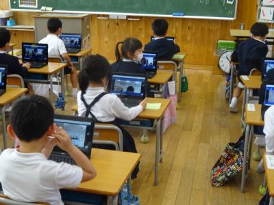 その後、状況に応じてパソコンを動かしている各教室の姿から、「パソコンは大切に使う。パソコンのIDやパスワードの取り扱いには注意が必要。」という思いがしっかり伝わっているなあと感じました。