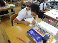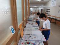 9月2日(金) 夏休みの宿題として科学研究や自由研究に取り組んだ作品が、職員室前にずらりと並んでいます。どの作品も、興味のあることや疑問に感じたことをこつこつと調べてある力作です。休み時間になると、友達の作品を見にくる児童がやって来ます。ちがう学年の作品をじっくり見ている児童もいます。各学年の代表作品は、七尾市児童生徒科学作品展に出品します。