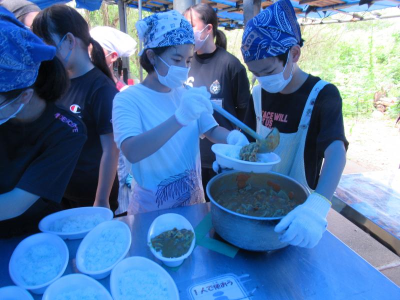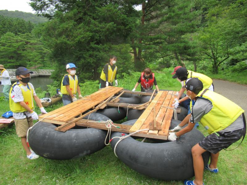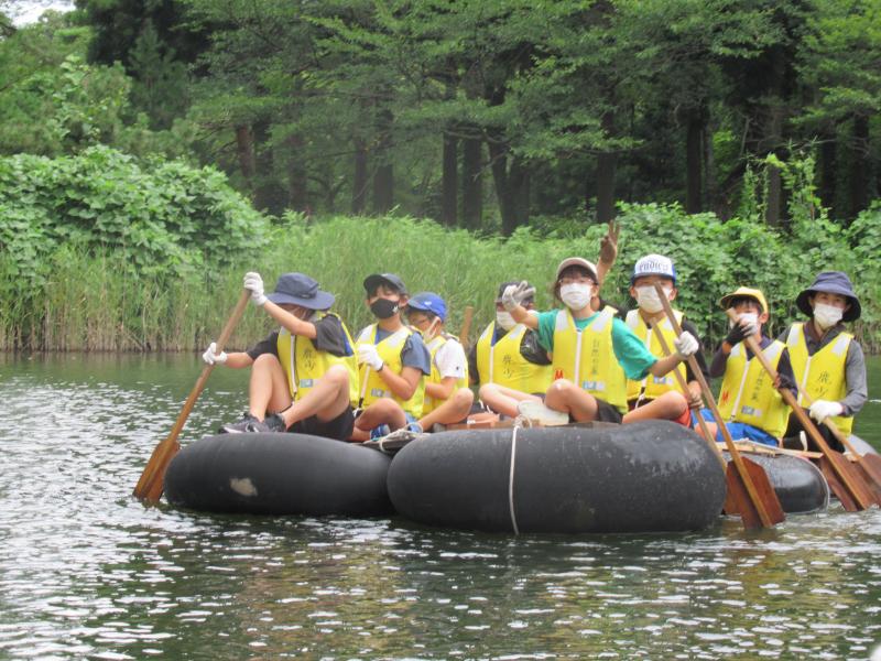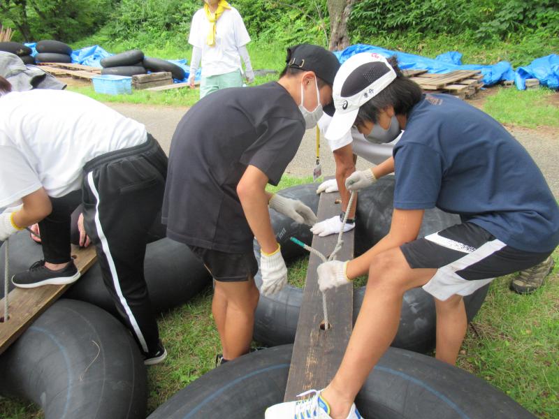 なんとか天候にも恵まれ,午前中は野外炊さん,午後はいかだ体験をしました。