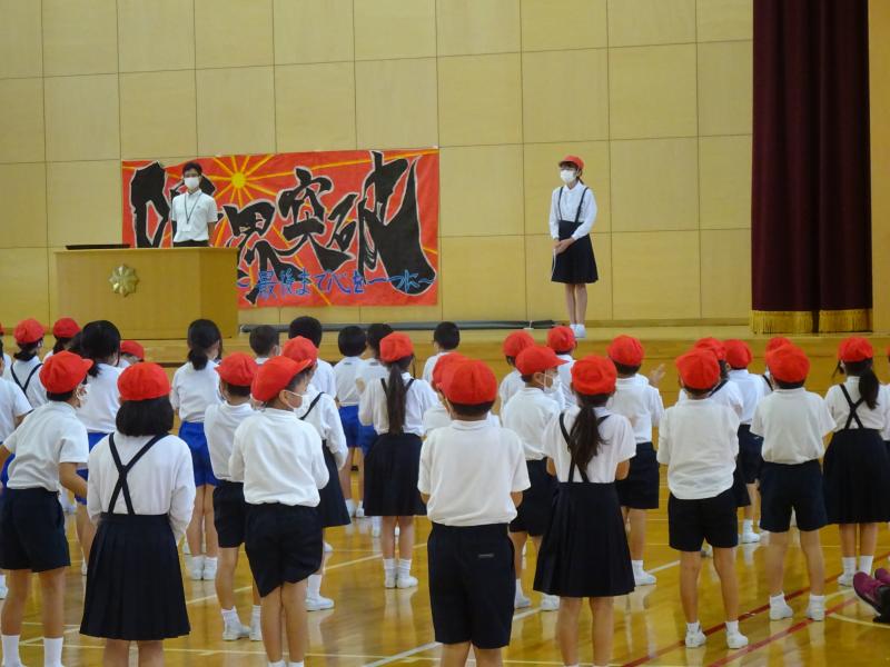 9月21日(水) 朝日スポーツフェスティバルの結団式が行われました。今年のテーマは「限界突破~最後まで 心を一つに~」です。6年生からテーマに込めた思い,各団団長から朝スポに向けた意気込みが語られました。これから応援練習や種目練習を6年生を中心としてスタートします。本番は10月6日(木)です。