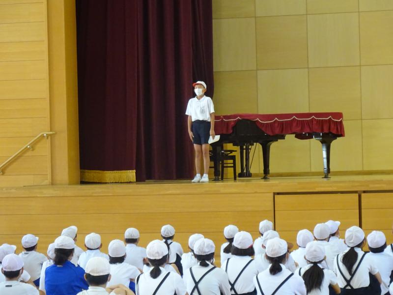 6月2日(木) 6月の全校集会がありました。今回の全校集会では学校のスローガンでもある「朝日でよかった」にちなんで4,5月の「よかった」と思えた体験を全校で共有しました。「算数のテストで100点をとれてよかった」「理科で育てている植物の芽が出てよかった」「外で体を動かすことができるようになってよかった」などたくさんの「よかった」が出てきました。