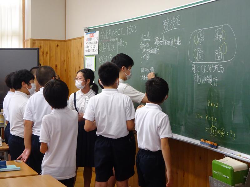 それら準備のためには,話し合いが欠かせません。クラス全員で,各団で,5・6年生で,たくさんの話し合いをしてきました。何度も話し合うことを通して,自分の意見を話す人が多くなったり,議論したり,折り合いをつけて決定したりと,どんどん成長する姿が見られています。6年生頼もしい