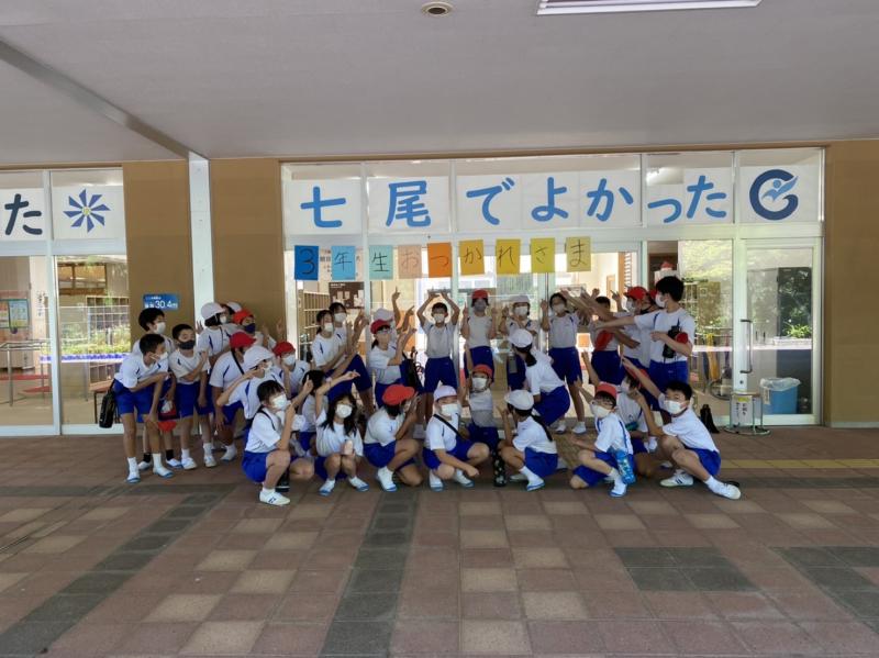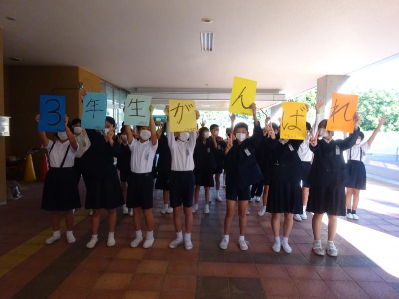 学校に着くと今度はなんと「おつかれさま」メッセージ。3年生はとても嬉しそうでした。
