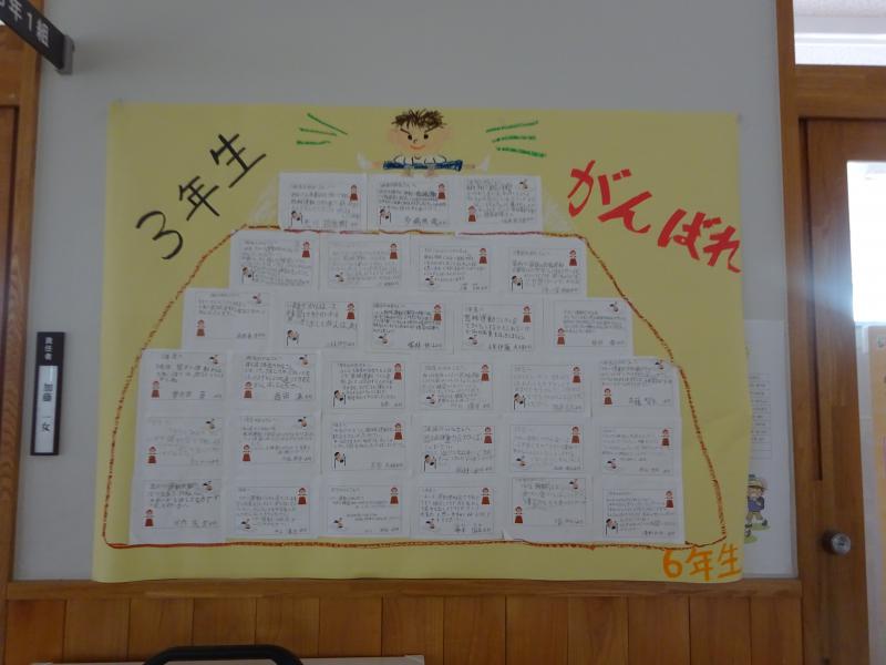 4年生・6年生からの温かい励ましのメッセージ,当日は出発前に6年生全員が玄関で「がんばれ」メッセージを送ってくれました。