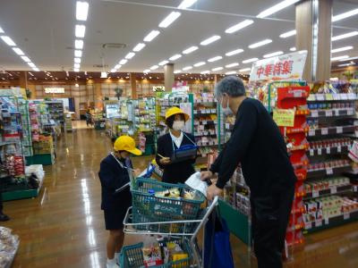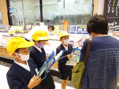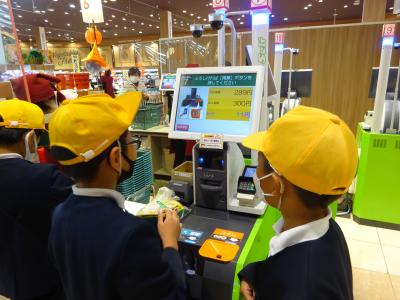 300円でお買い物では,暗算をしながら子ども達は,楽しそうにお買い物をしていました。また,グループに分かれて,お客さんや働いている方にインタビューもしました。
