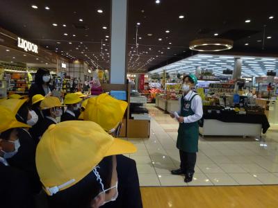 最後に店長さんにさまざまな質問に答えていただきました。一番高い商品を聞いたところ,どんたくでは,びっくりするほど高いものもありました。その他,商品の種類やお客さんがたくさん来る時間,入り口は,季節の品物を並べているなどたくさん学ぶことができ,有意義な見学となりました。