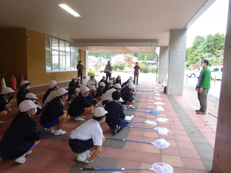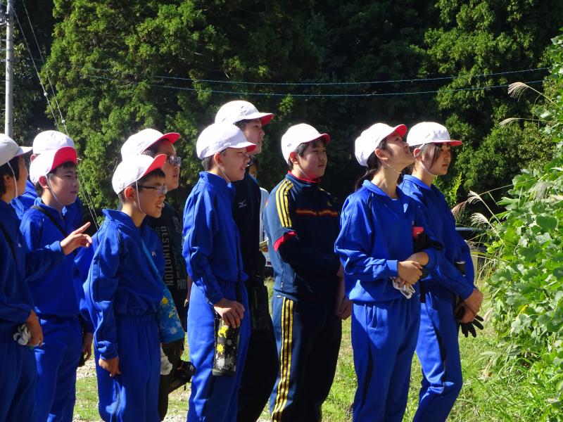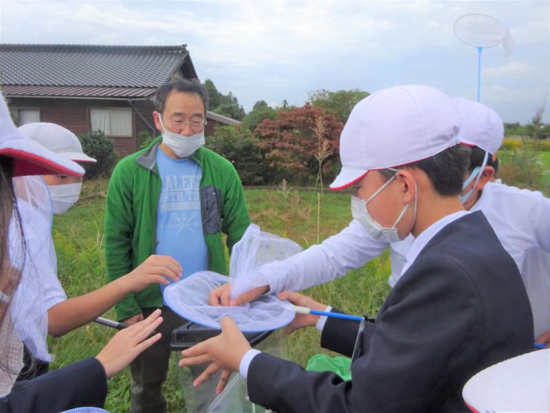 虫取り網を構えながら田んぼ道を歩く子供達の姿。その姿を見て「自然いっぱいの朝日地区,素敵ですね。」と講師の方々がおっしゃっていました。豊かな自然に囲まれていることは当たり前でないことに気付いた日でした