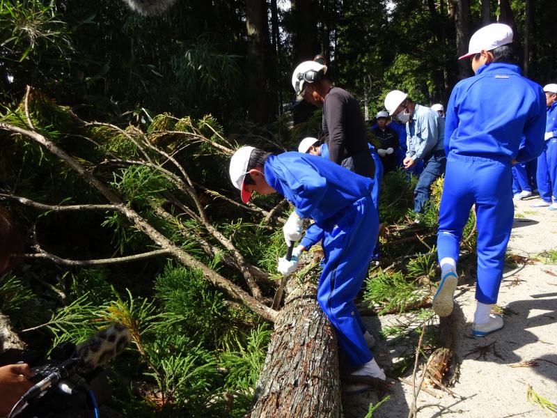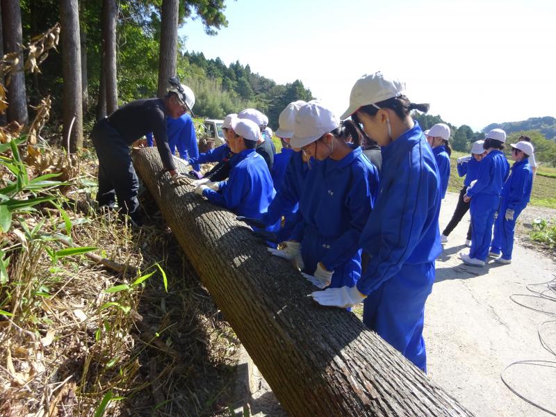 6年生は,10月14日(金)に七尾市花園町で「里山で木こり学校」の体験をしてきました