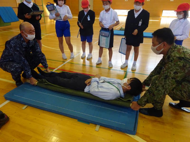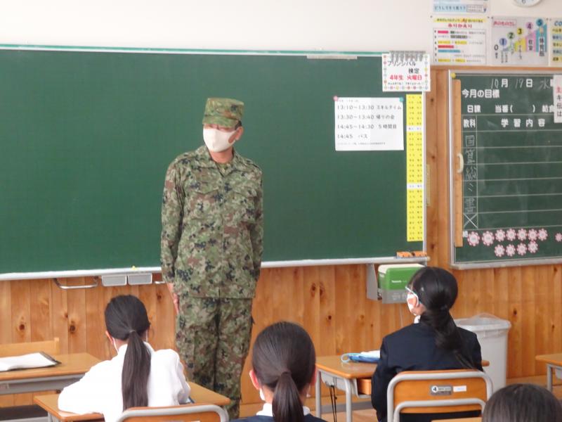 10月19日(水) 陸上自衛隊3名,海上自衛隊1名をゲストティチャートとしてお招きし,災害が起こったときにどのような活動をしているのかを教えてもらいました。