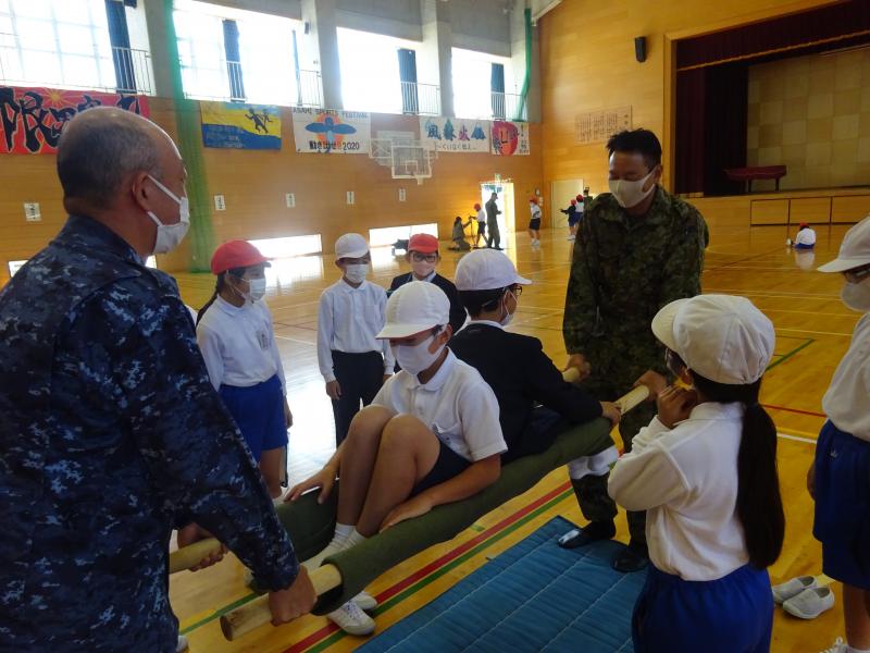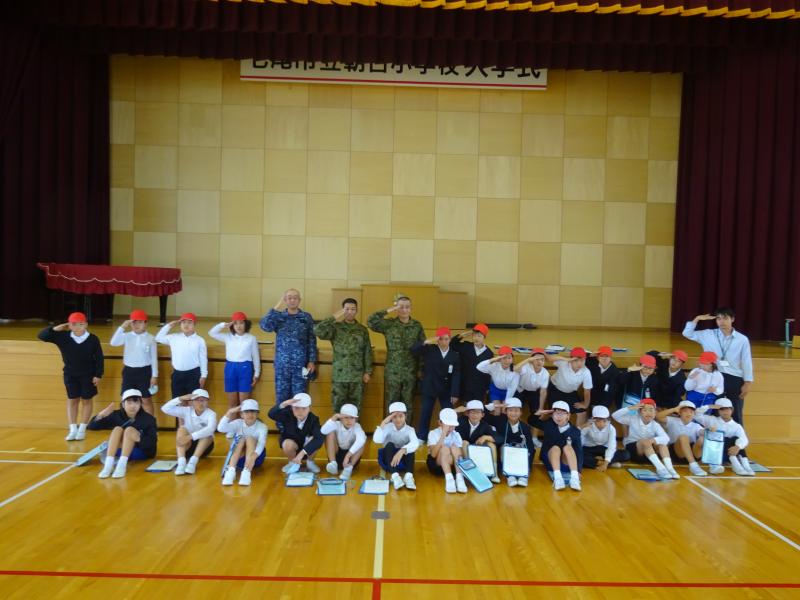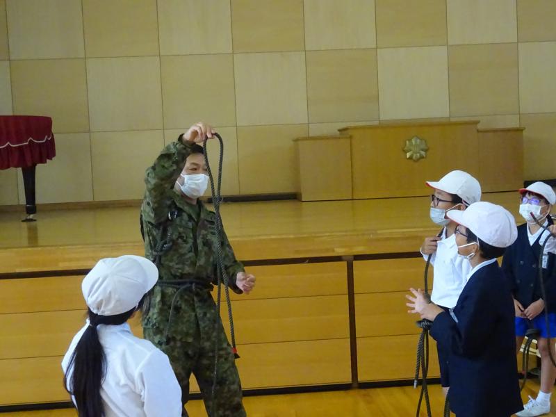 6月3日(金) 4年生の総合の時間に航空自衛官の成田さん、陸上自衛官の松村さん、広報官の山下さんの3人をゲストティーチャーにお招きし、自衛官のお仕事について教えていただきました。子ども達は目を輝かせて話を聞いていました。
