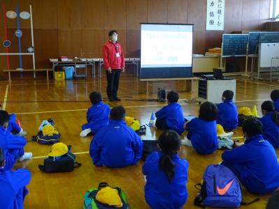 「みんなが生きている間におこるだろう言われている南海トラフ巨大地震のときに生かしてほしい」という熱いメッセージの時には,子どもたちの表情はとても真剣でした。