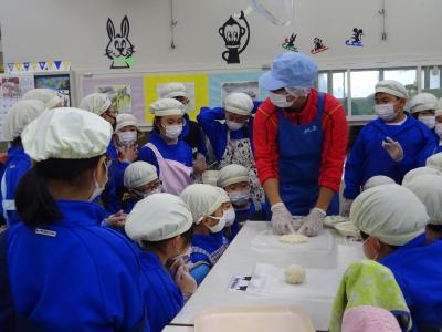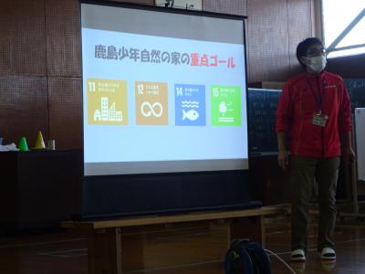 11月11日(金),3年生は,鹿島少年自然の家に行き「SDGsを学ぼう~食品ロス削減~」について学習し,「おから」を使った「おからピザ作り」を体験してきました。SDGsとは,「今のままでは,地球がもたない。だから,だれもが笑顔でいられる世界をいつまでも持続させること」ということをわかりやすく教えていただきました。