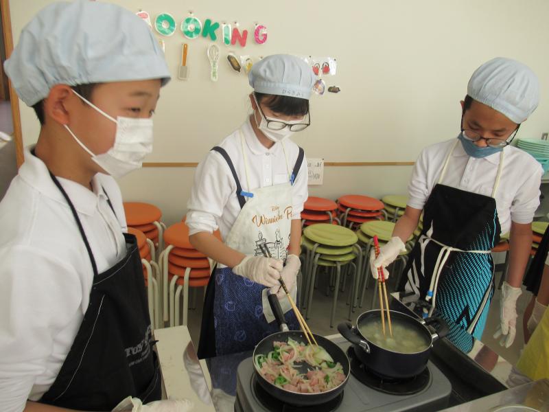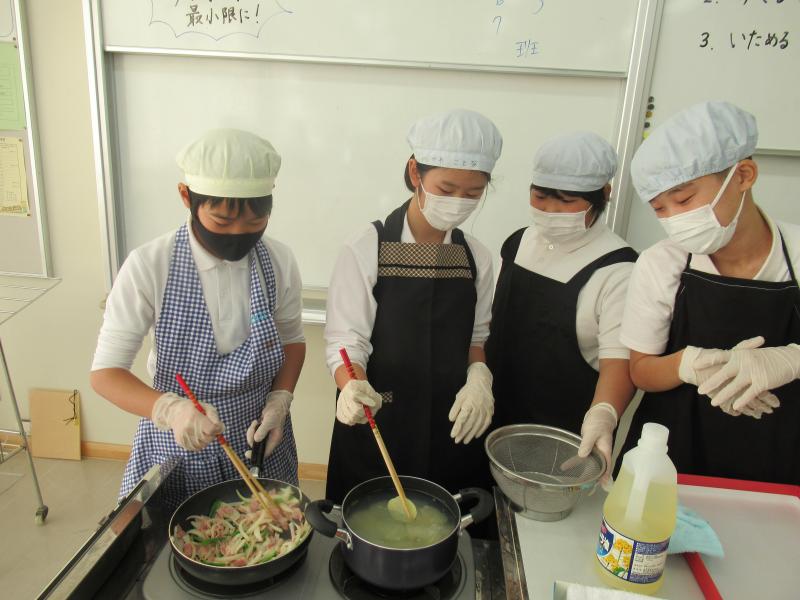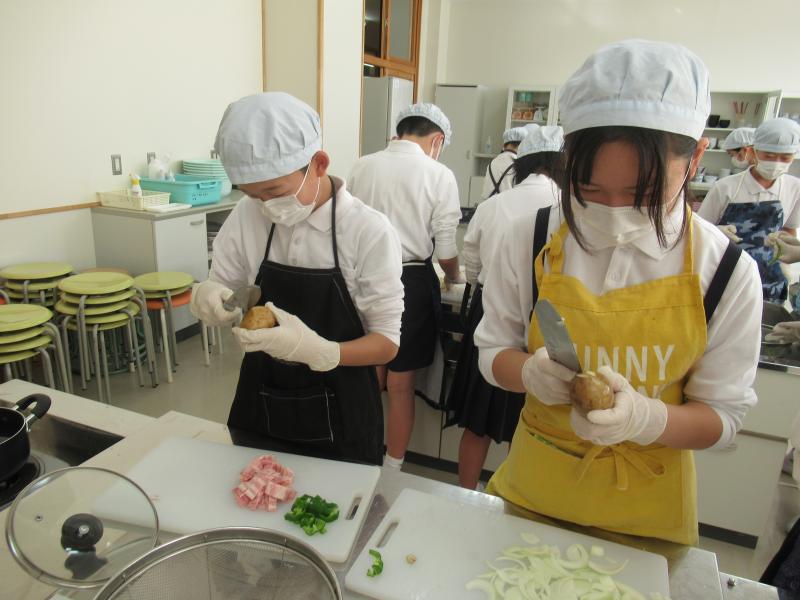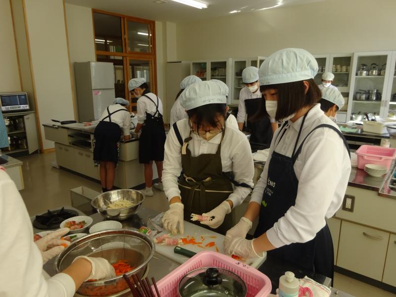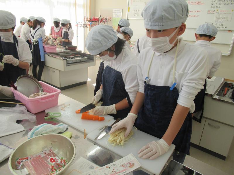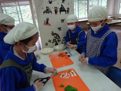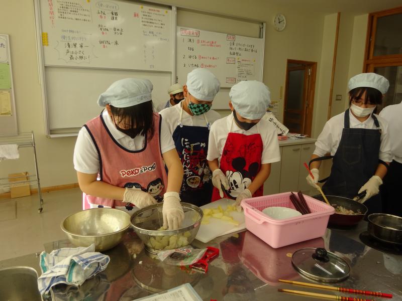 午前。コロナ禍でみんなで調理実習をするのは初めて。