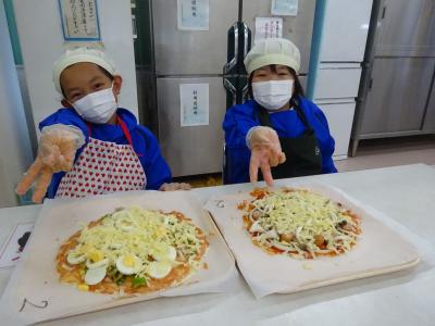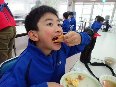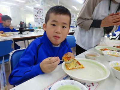 食べた子どもたちの第一声は,「おいしい~」でした。ピザのほかにスープ・ゼリーもいただき子どもたちはおなかいっぱいとても満足そうでした。