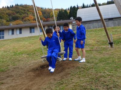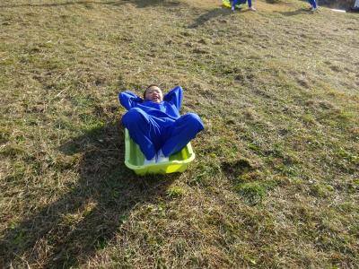 昼食後は,天気もとてもよく元気いっぱい外遊び。シーソーやハイジのブランコ,そり遊びを楽しみました。