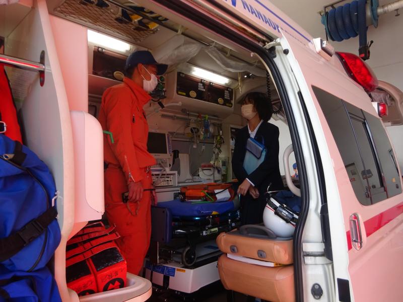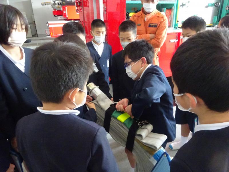 酸素ボンベを担がせてもらった時は,「重い~」と,消防士さんのすごさを感じていました。