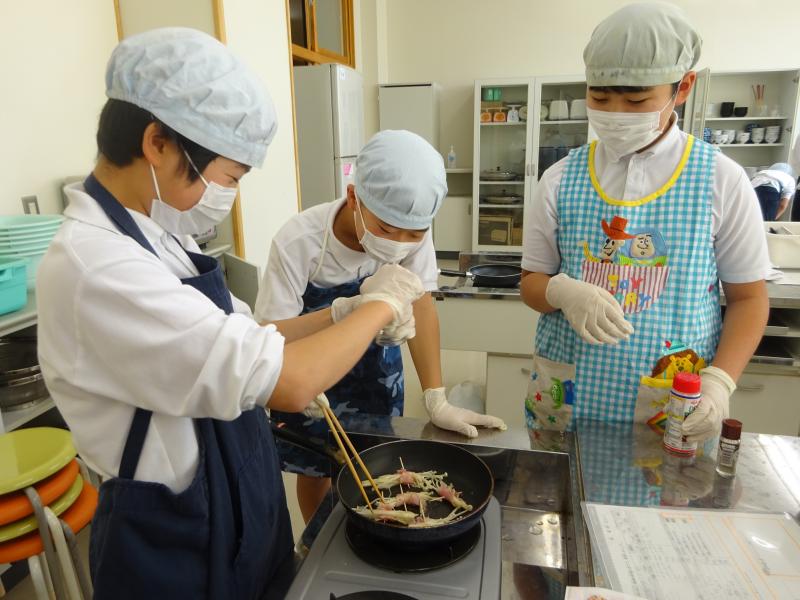 ベーコンでうまく野菜を巻くにはベーコンの向きが大切だということや,早くお湯を沸かすには量が多すぎてはいけないことなど,実習を通して学ぶことがたくさんありました