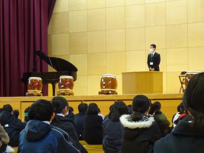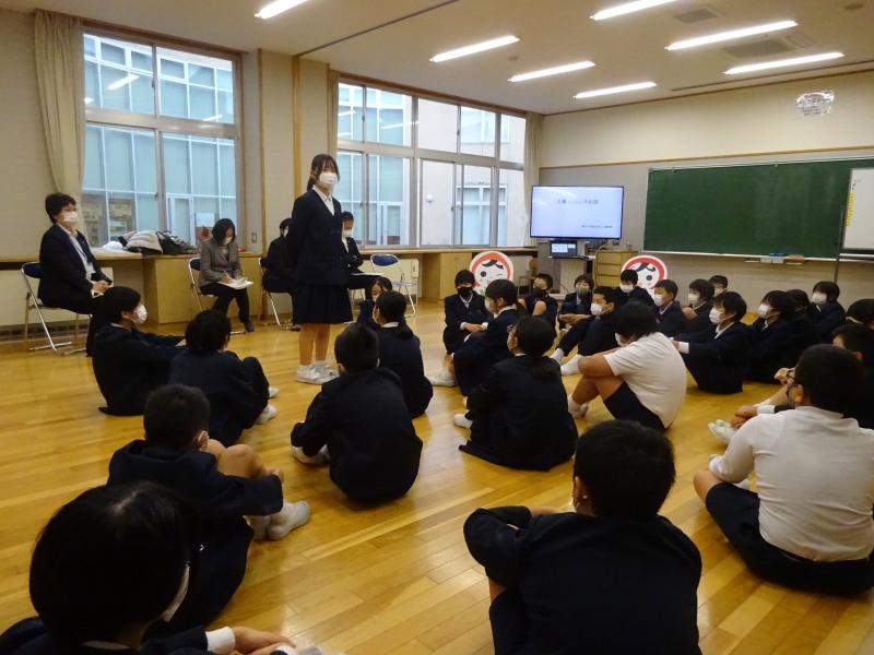 七尾中学校では,授業参観や校舎見学をさせてもらったり,学校生活や部活動紹介などをしてもらったりしました