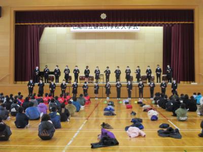 3月16日(木)第5回令和4年度卒業証書授与式を行うことができました。今年は6年生と一緒に4・5年生も参加し,1~3年生はオンラインでの参加となりました。卒業生の起立,礼,着席,話を聞く姿勢,卒業証書を受け取る姿,別れの言葉,合唱など,どれも大変立派でした。最高学年として朝日小学校を引っ張ってきた6年生の力を再確認できました。教室では6年生との別れを悲しむ在校生の姿も見られたようです。卒業生の素晴らしい姿を見ることができた4・5年生は来年の朝日小学校を引っ張っていってくれることでしょう。中学校でも常に限界突破し続ける姿勢を忘れずに頑張ってください。応援しています。