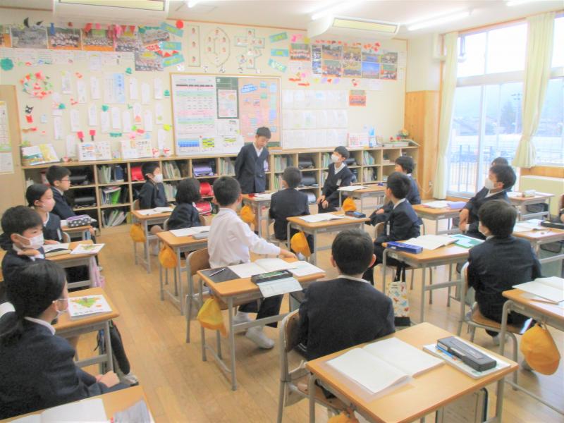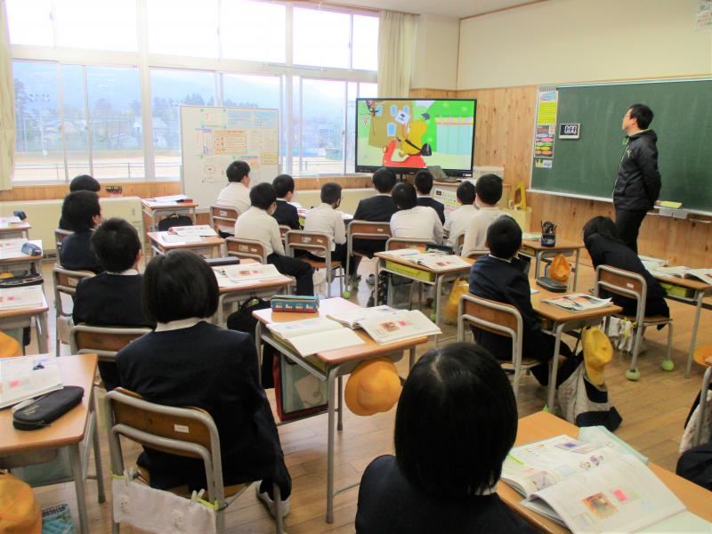 4年生は2学期末から「石川県の伝統工芸のよさを伝えるリーフレット」を作っていました。社会の学習ともつなげながら,石川県にはどのような伝統工芸があるのか調べ,さらに一人一人が興味を持った伝統工芸をくわしく調べ,よさを伝えるリーフレットを作りました。そのリーフレットを静岡県磐田市立東部小学校4年生と交流する約束をしていました。