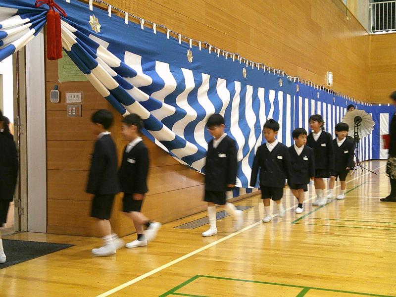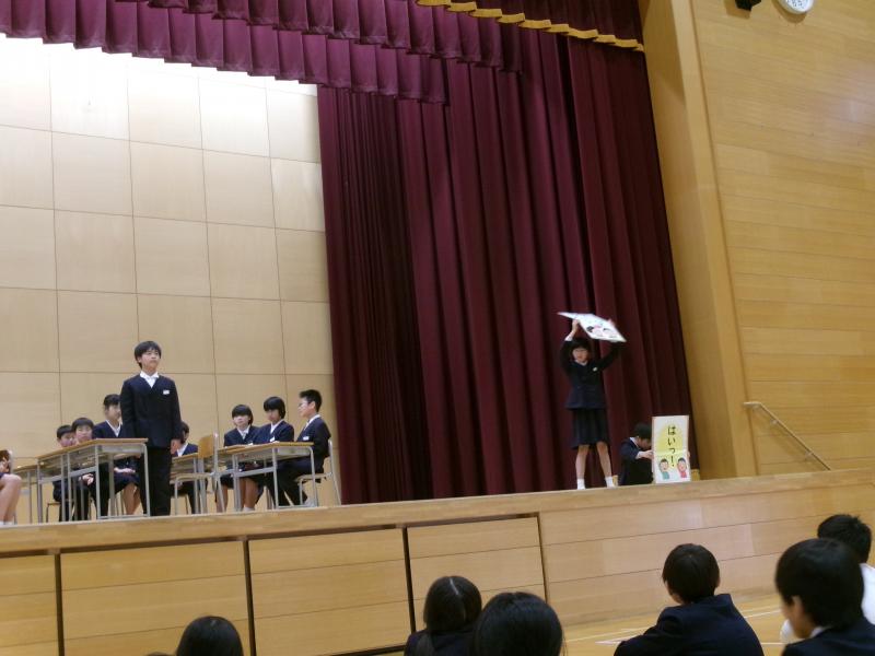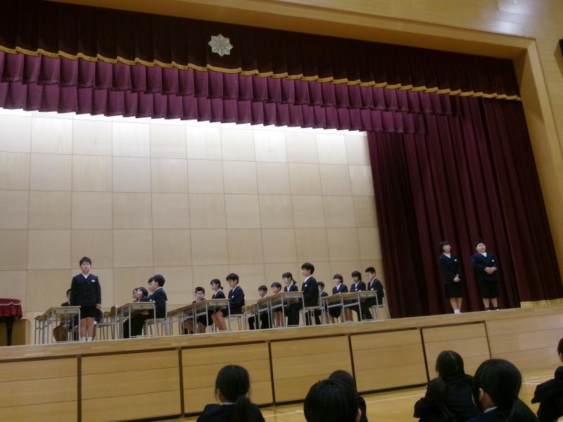 1~5年生は真剣な表情で,6年生の話を聞いていました。
