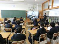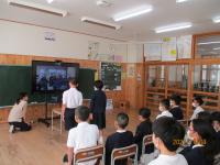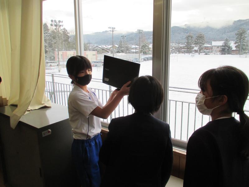社会科「特色ある地域と人々のくらし」の学習で、千葉県のみつわ台南小学校と交流を続けてきました。今回は、千葉県の紹介をしていただきました。「大連ハス」「ディズニーランド」「落花生」「醤油生産量日本一」「バームクーヘンに醤油を・・・」等、千葉県ならではの紹介をしてくれました。また、端末を使って学校の中の紹介をしたり、天気(雪の様子)をカメラを通して送ったりして、朝日小学校とみつわ台南小学校の今の情報を交流することができました。雪で覆われた運動場をカメラで写した時は「わあ、いいなぁ。」とうらやましがられました。
